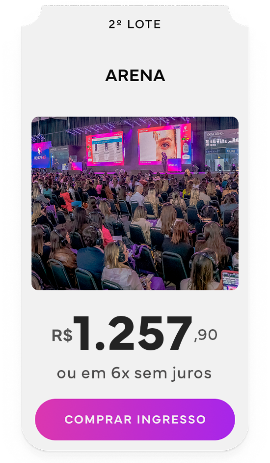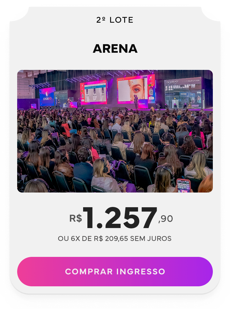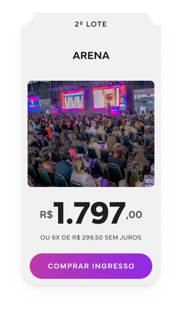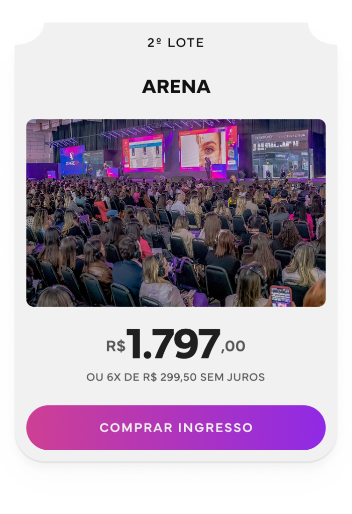 Os ingressos para o CONGREHOF 2026, até o momento, estão divididos em ARENA e LIVE INJECTION, garantindo a você acesso às áreas respectivas de cada ingresso descritas na área de compra, com possibilidades futuras de UPGRADE.