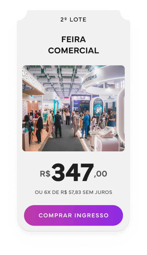 São mais de 7.000 m² onde as principais marcas da saúde estética apresentam produtos, lançamentos e experiências exclusivas. Em 2026, contará com ativações especiais, condições comerciais diferenciadas e interação direta com você congressista.